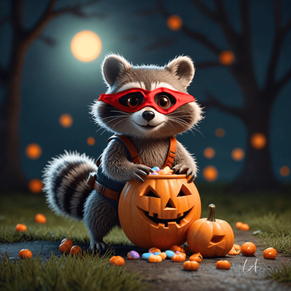 Dare To Scan – Halloween Collection Pumpkin Bandit Raccoon – Mask on, candy gone